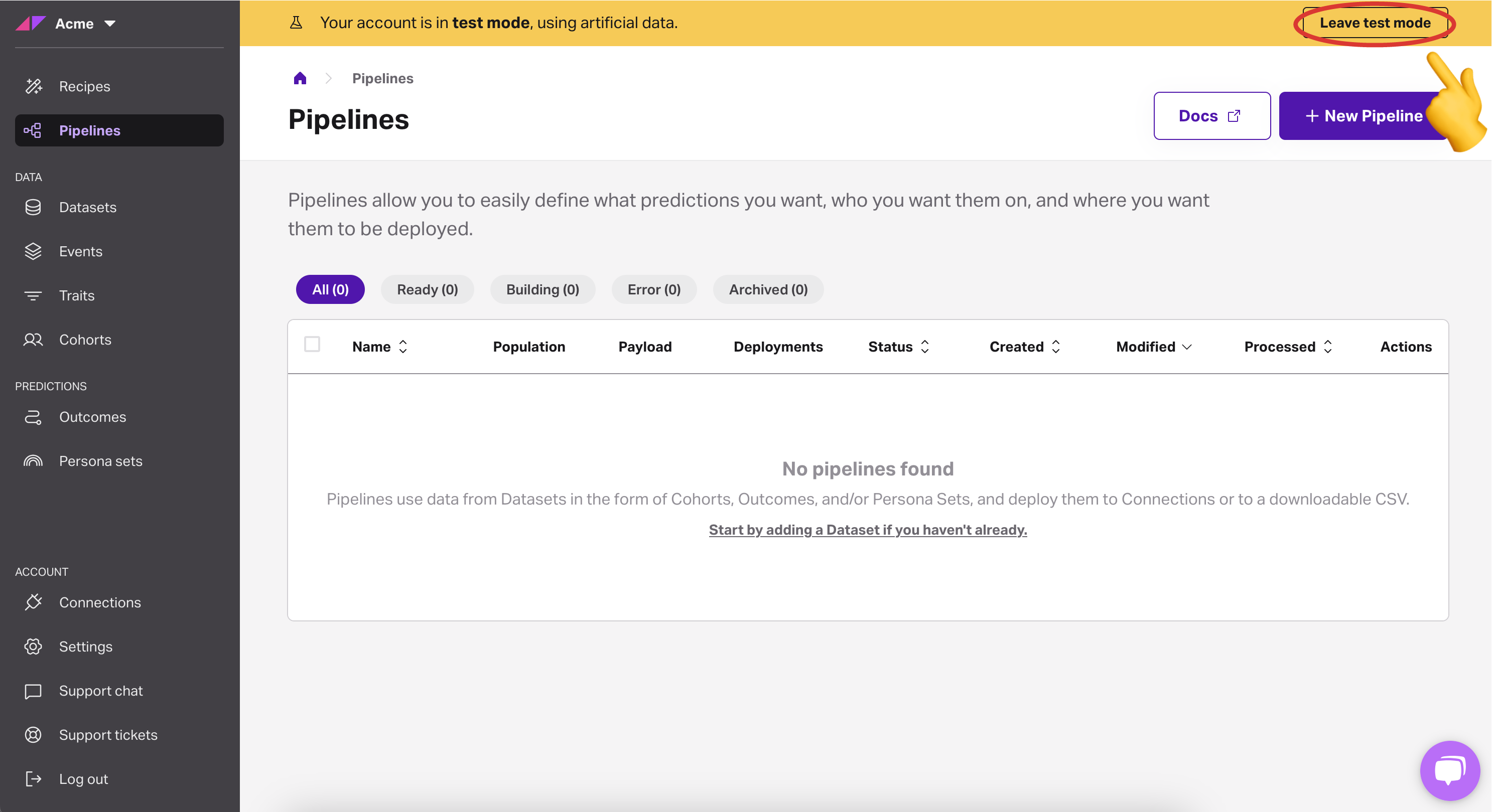 - If you see a test mode warning, disable it before uploading your data.