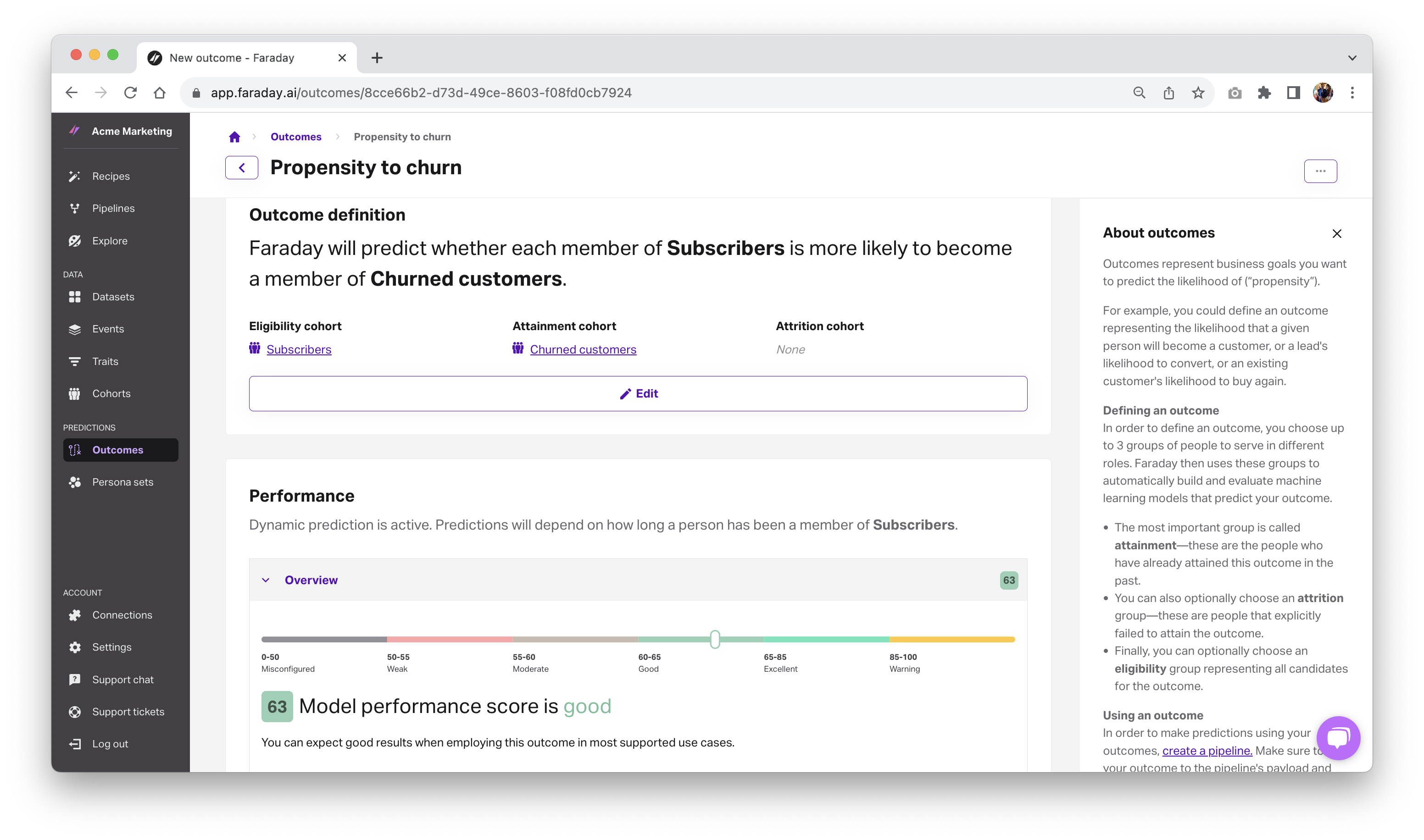 Once churn scores are applied to your customers, Faraday automatically updates and refreshes them based on any new data or changes to data used in the predictions, ensuring that churn scores are never out of date with your customers’ wants and needs.
