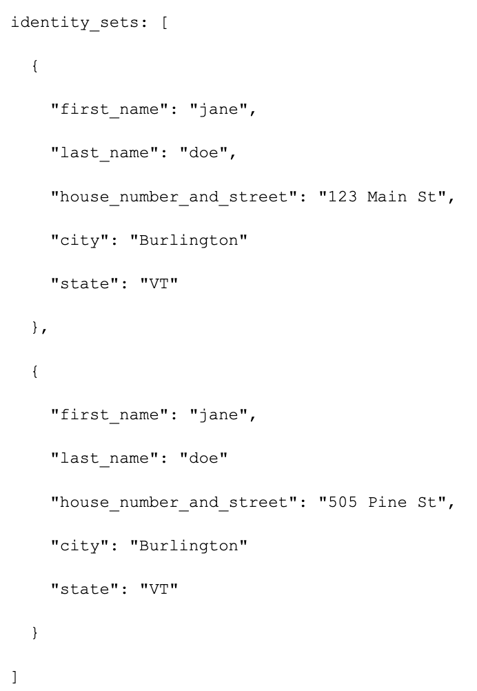 For our Lookup API users, you’re now able to use multiple identifiers in a single identity_sets array to find a match for a person. If the root-level identifier does not find a match, Faraday will use each included identifier until a match is found.