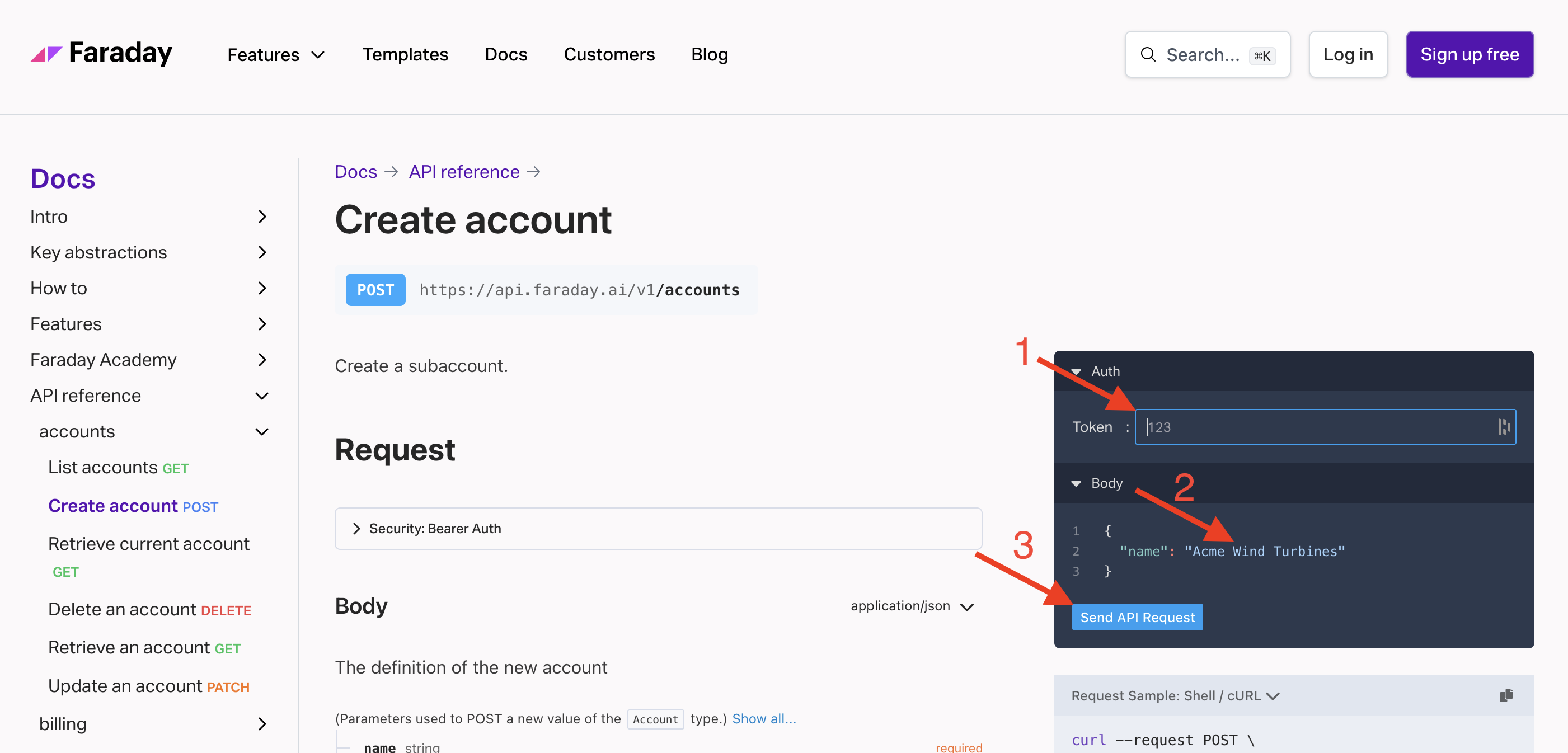 How to create a subaccount using Faraday's API