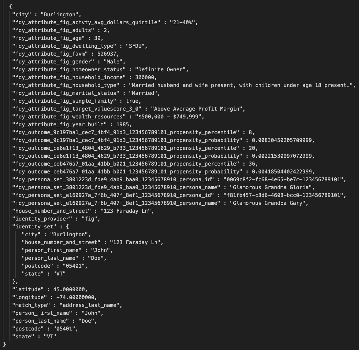 When Faraday processes the identity, it returns structured output to your flow. These include: